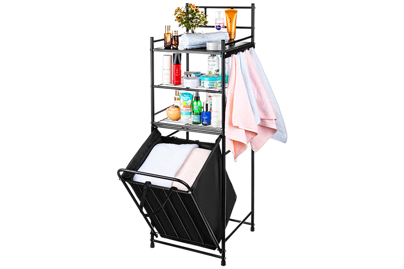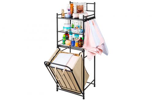 Стеллаж с 3-мя полками и корзиной для белья 40*35*125 см "Черный" со светлой корзиной