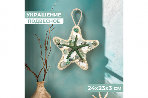БЫЛО 1131 руб! Пасхальное украшение морская звезда с подвеской 24,5*23*3,5 см "Ракушки с жемчугом", белое с зеленым
