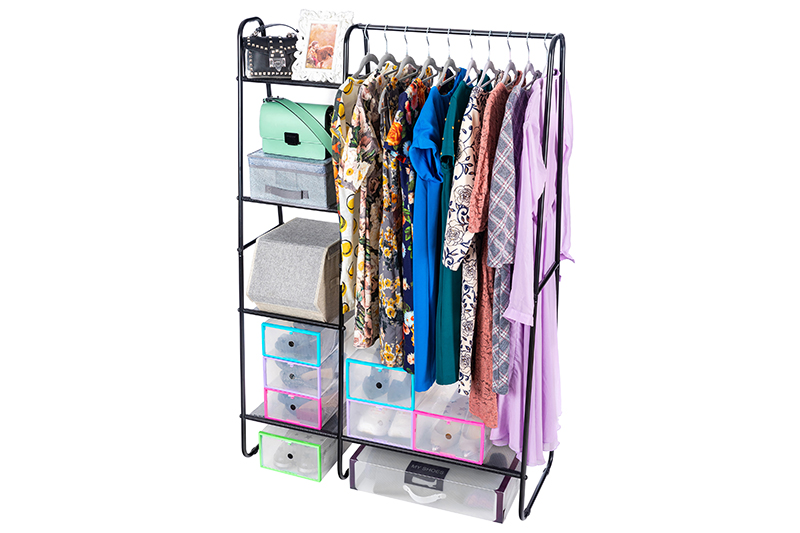 Вешалка для одежды 100*40*150 см "Черная" + 5 полок