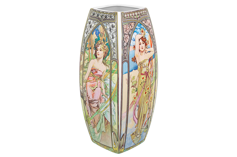 БЫЛО 1682 руб! Ваза 2 л 11,5*11,5*25 см "Времена года" квадрат, NEW BONE CHINA