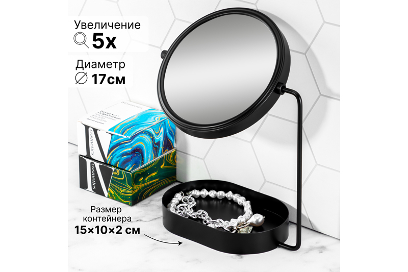 Зеркало настольное двустороннее с контейнером 19*10*26 см "Черное"