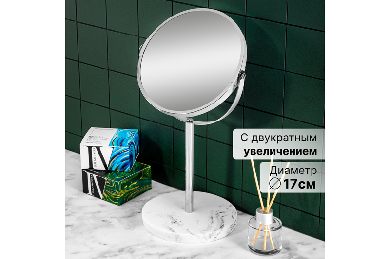 Зеркало двустороннее на мраморной подставке 18,5*15*34,5 см "Хром"