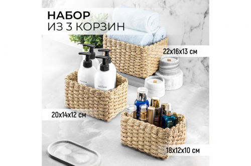 Набор 3 плетеных корзин 22*16*13см, 20*14*12см, 18*12*10см, соломенный