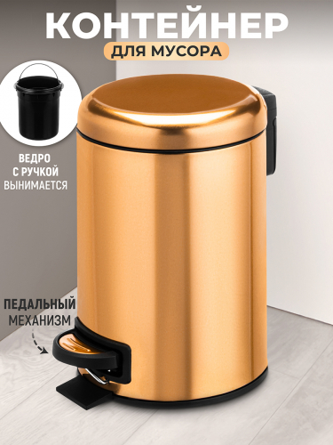 Контейнер для мусора 3 л 22,5*17*26,5 см с педалью + ведро, бронзовый