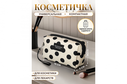 Косметичка - сумочка 18*8*10,5 см "Белая в черный горошек", с ручкой