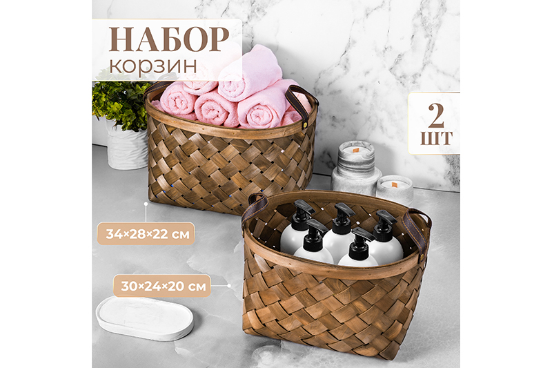 Набор 2 корзин 1 корзинка 34,5*26*15,5 см, 1 корзинка 29*22*13,5 см, коричневый