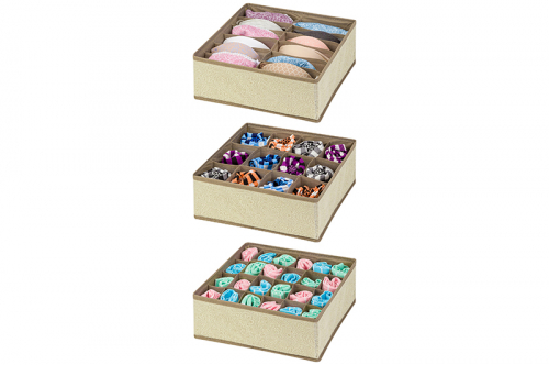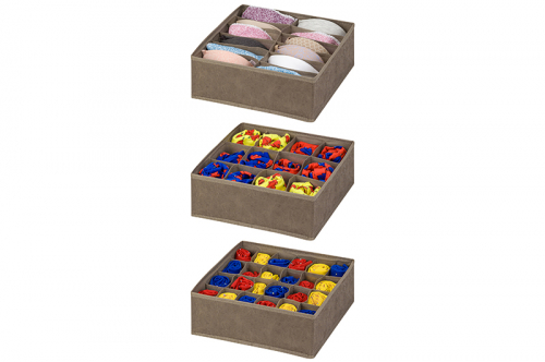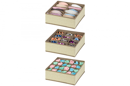 БЫЛО 959 руб! Набор 3 органайзеров д/нижнего белья и носков 32*32*12 см "Цветоч.узор на беж."(12,12,24 ячеек),б/кр
