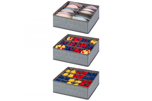 БЫЛО 959 руб! Набор 3 органайзеров д/нижнего белья и носков 32*32*12 см "Розы на сером" (12,12,24 ячеек), без крыш