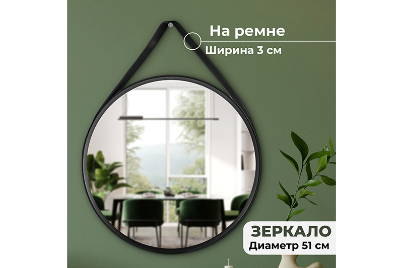 Зеркало настенное 51,5*51,5*4,5 см с креплением ремень, пластик