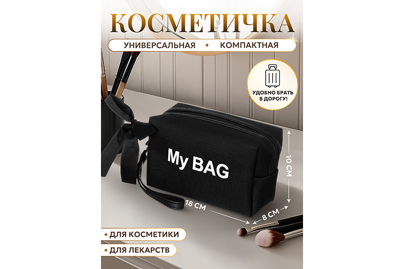 Косметичка - сумочка 18*8*10 см "My BAG", с ручкой, черный