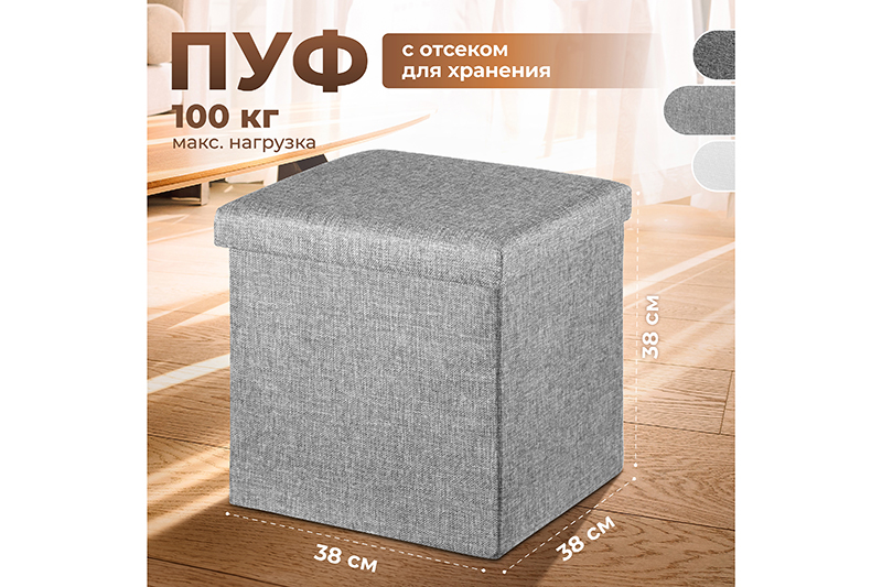 Пуф складной для хранения 38*38*38см, светло-серый