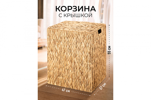 Корзина плетеная д/хранения 47*37*55,5 см с крышкой, ручками, складная, водный гиацинт