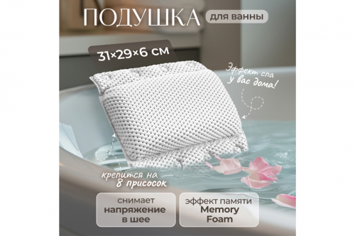 Подушка для ванны 31*29*6 см на 8 присосках, белая