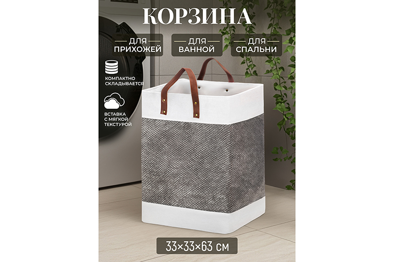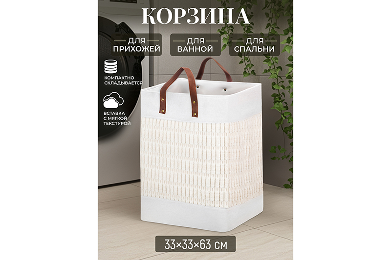 Корзина текстильная д/хранения 33*33*63 см, с ручками