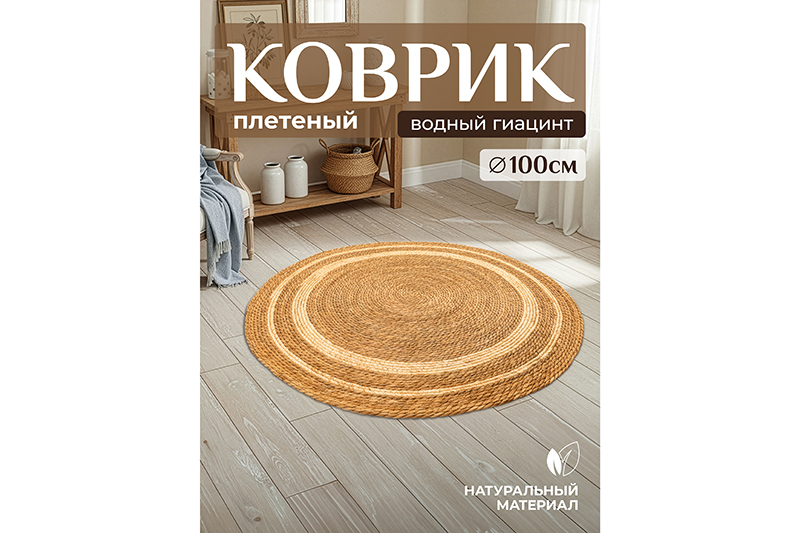 Коврик плетеный 100*100*0,7 см, круглый, водный гиацинт