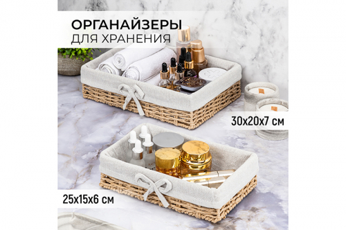 Набор 2 органайзеров д/хранения 30*20*7,5 см плетеный натуральный