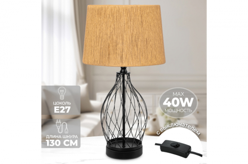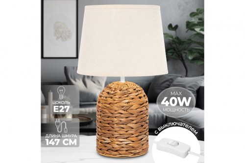 Настольная лампа 25*25*42 см "Плетенка" + бежевый круг абажур