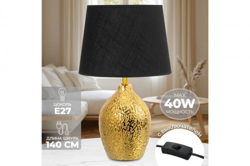 Настольная лампа 25*25*42,5 см "Мятое золото" + черный круг абажур