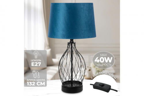 Настольная лампа 28*28*53 см + синий круг абажур