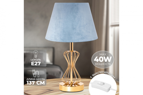 Настольная лампа 25*25*44 см + серо - голубой круг абажур