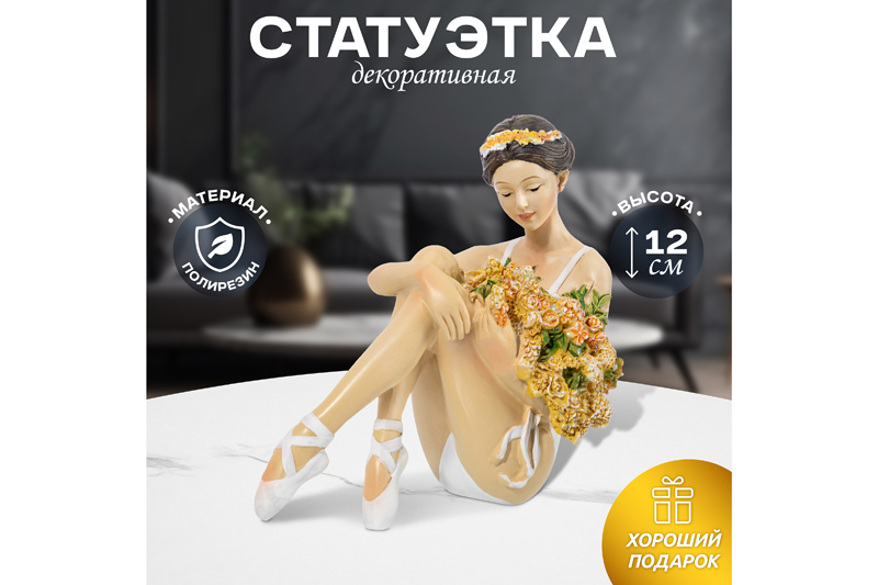 БЫЛО 1532 руб! Статуэтка 9*12,5*25 см "Балерина с цветами в желтом"
