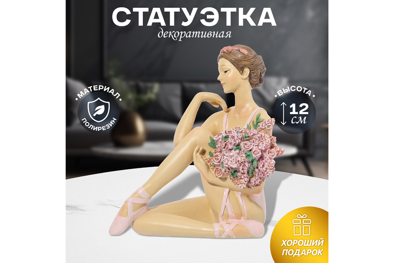 БЫЛО 1155 руб! Статуэтка 12,5*7*12 см "Балерина с цветами в белом"