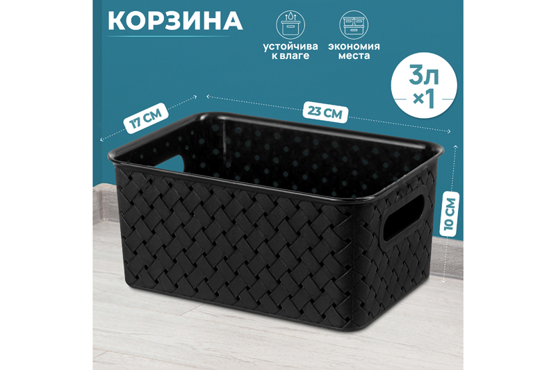 Корзинка 3 л 23,5*17,3*10,5 см "Береста" черная (521007)