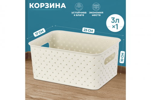 Корзинка 3 л 23,5*17,3*10,5 см "Береста" слоновая кость (модель 5210/26)