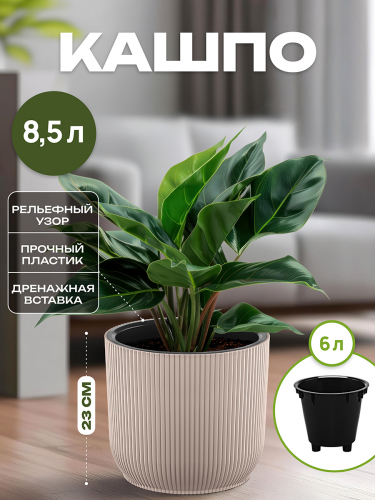 Кашпо 8,5 л 26*26*23 см "Линея" темно-бежевый (модель 659)