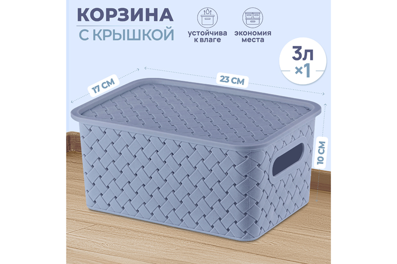 Корзинка с крышкой 3 л 23,5*17,3*10,5 см "Береста" синяя (521159)