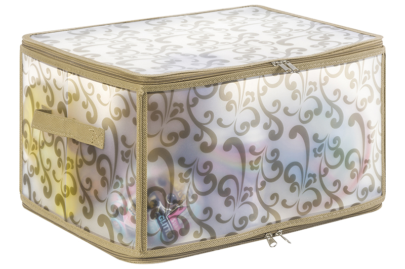 БЫЛО 639 руб! Кофр складной для хранения 40*30*25 см "Узор на серебре" на молнии, пластик.