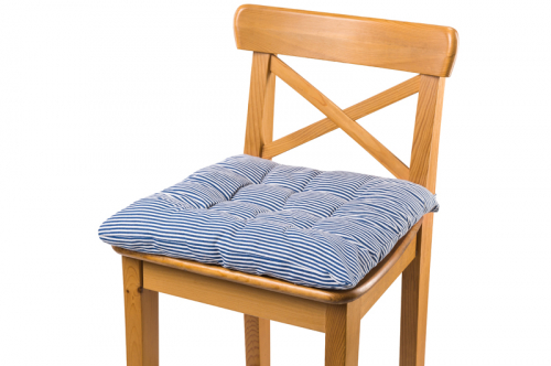 Подушка на стул 38*38*4,5 см "Полоски" синяя