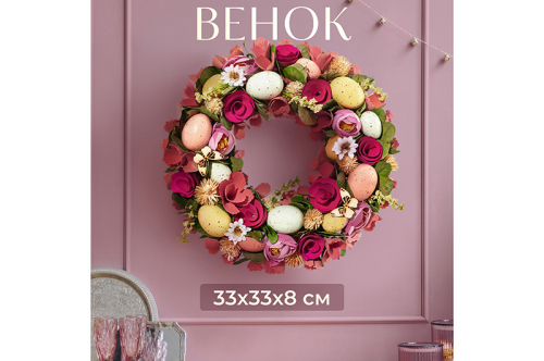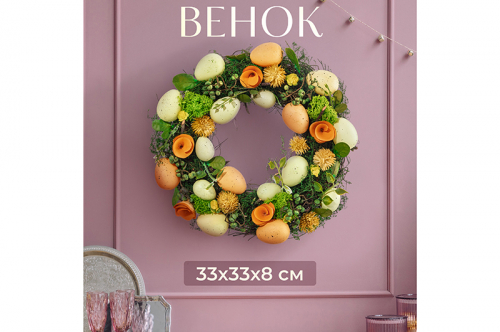 БЫЛО 2124 руб! Пасхальное украшение венок 31*31*7,5 см "Весенний сад", круг