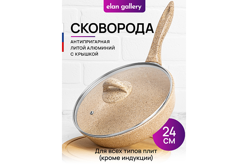 БЫЛО 2287 руб! Сковорода глубокая 24 см ГАРМОНИЯ ВКУСА "Медовый гранит" С КРЫШКОЙ ф24, н/р, 43,5*25*13,5 см