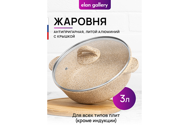 БЫЛО 2535 руб! Жаровня (сотейник) 24 см 3 л ГАРМОНИЯ ВКУСА "Медовый гранит" С КРЫШКОЙ ф24, 30,5*25*16 см