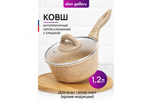 БЫЛО 1810 руб! Ковш 1,2 л ГАРМОНИЯ ВКУСА "Медовый гранит" С КРЫШКОЙ ф16, н/р, 33*17*15 см
