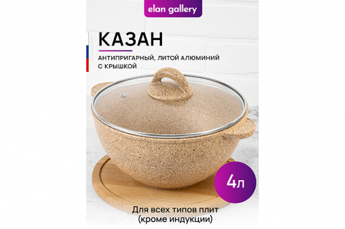 БЫЛО 2966 руб! Казан 4 л ГАРМОНИЯ ВКУСА "Медовый гранит" С КРЫШКОЙ ф24, 30,5*25,5*19,5 см