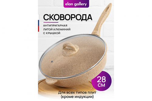БЫЛО 2746 руб! Сковорода глубокая 28 см ГАРМОНИЯ ВКУСА "Медовый гранит" С КРЫШКОЙ ф28, н/р, 50*29*14,5 см