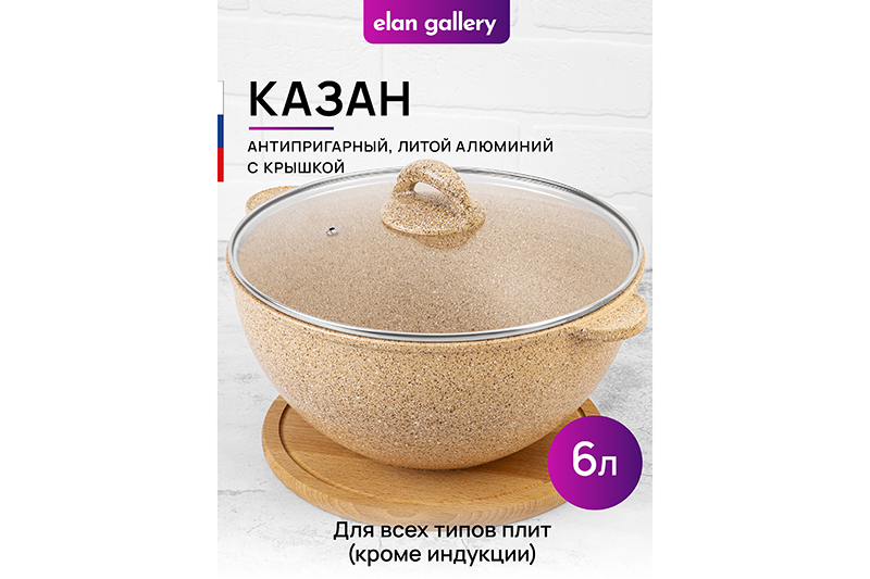 БЫЛО 3333 руб! Казан 6 л ГАРМОНИЯ ВКУСА "Медовый гранит" С КРЫШКОЙ ф28, 34,5*29,5*21,5 см
