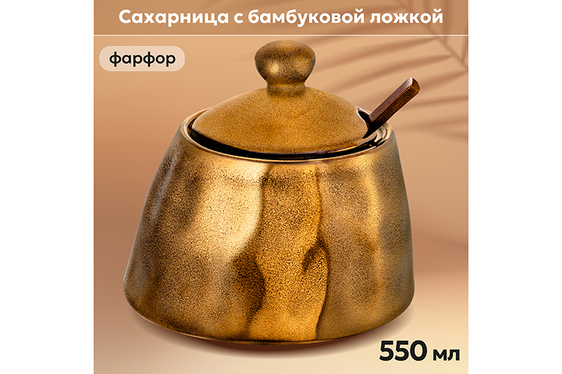БЫЛО 680 руб! Сахарница 550 мл 13*13*12 см "Бронза" + бамбуковая ложка