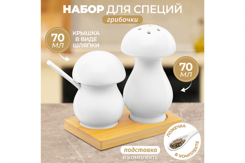 Набор д/специй 2 пр. "Грибочки" на дер. подставке