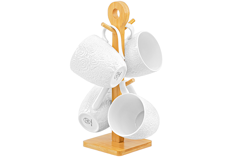 Набор 4 кружек 350 мл "Розы" на дерев. подставке
