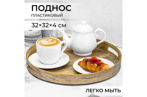 Поднос сервировочный 30*30*2 см, круглый, бамбук