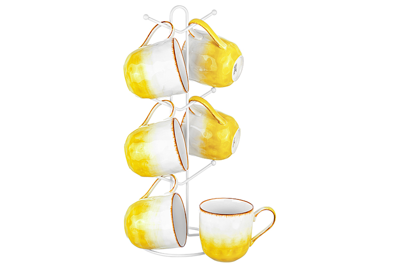 БЫЛО 4141 руб! Набор 6 кружек 360 мл "Кантри" желтый, на металлической подставке 15*15*41,5 см