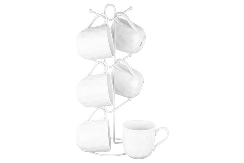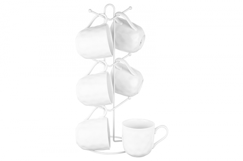 БЫЛО 4399 руб! Набор 6 кружек 360 мл "Консонанс" белый матовый, на металлической подставке 15*15*41,5 см