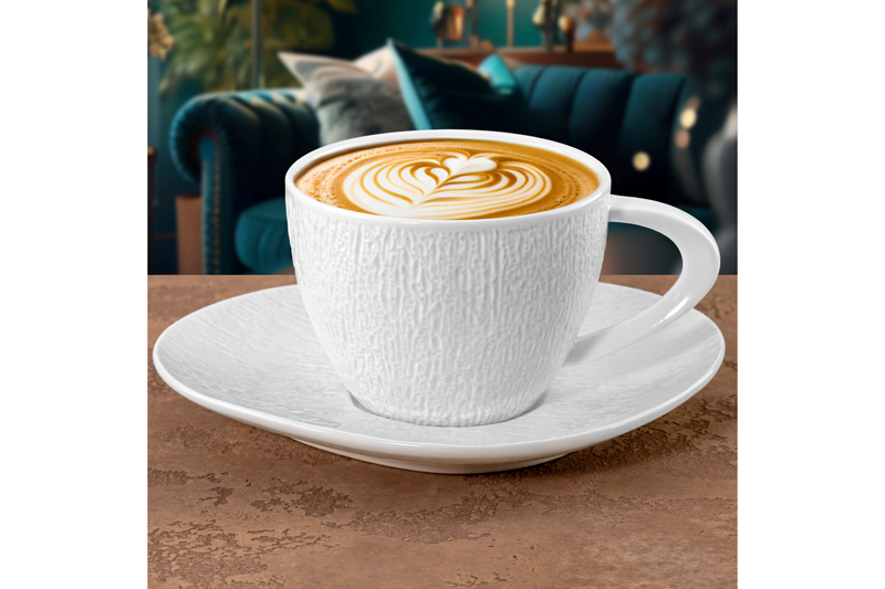 БЫЛО 463 руб! Чашка для капучино и кофе латте 250 мл 11*8,3*7,5 см "Белый узор" + дер. подст.