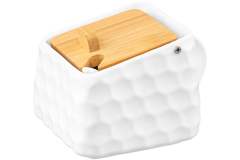 БЫЛО 551 руб! Емкость для сахара 1,5 л 14*11*11 см "SUGAR" с деревянной крышкой, белая