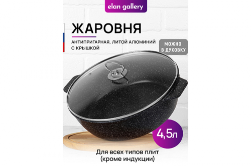 БЫЛО 2680 руб! Жаровня (сотейник) 28 см 4,5 л ГАРМОНИЯ ВКУСА "Черный мрамор" С КРЫШКОЙ ф28, 34*29*15,5 см,д/духовки