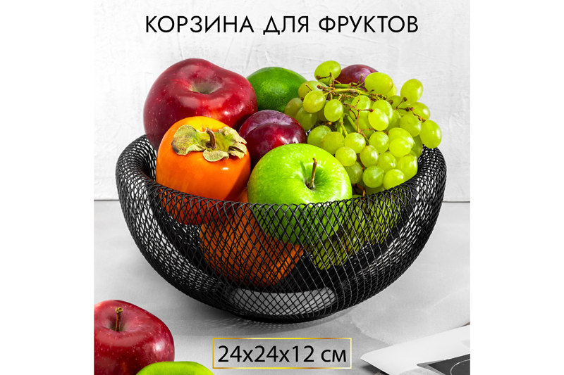 БЫЛО 698 руб! Корзина для фруктов 24,5*24,5*12 см "Черная"
