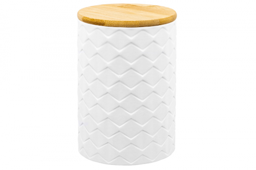 БЫЛО 620 руб! Банка д/хранения 1,1 л 11*11*16 см "Аргайл" + бамбук.крышка с силикон. упл, белый перламутр, доломит